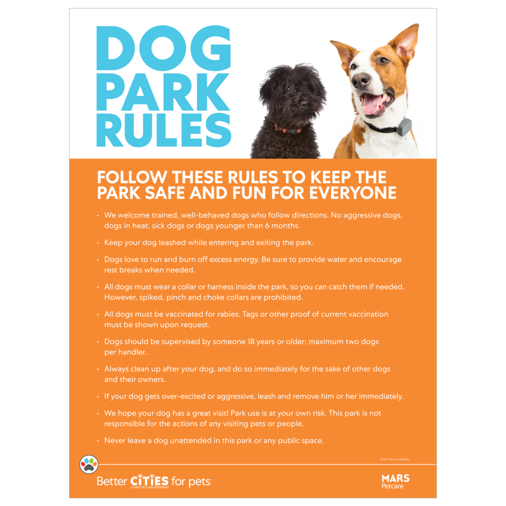 Tip: Bright, colorful signage with large fonts and happy pet faces helps draw attention to the important messages being communicated. More tips: BetterCitiesForPets.com